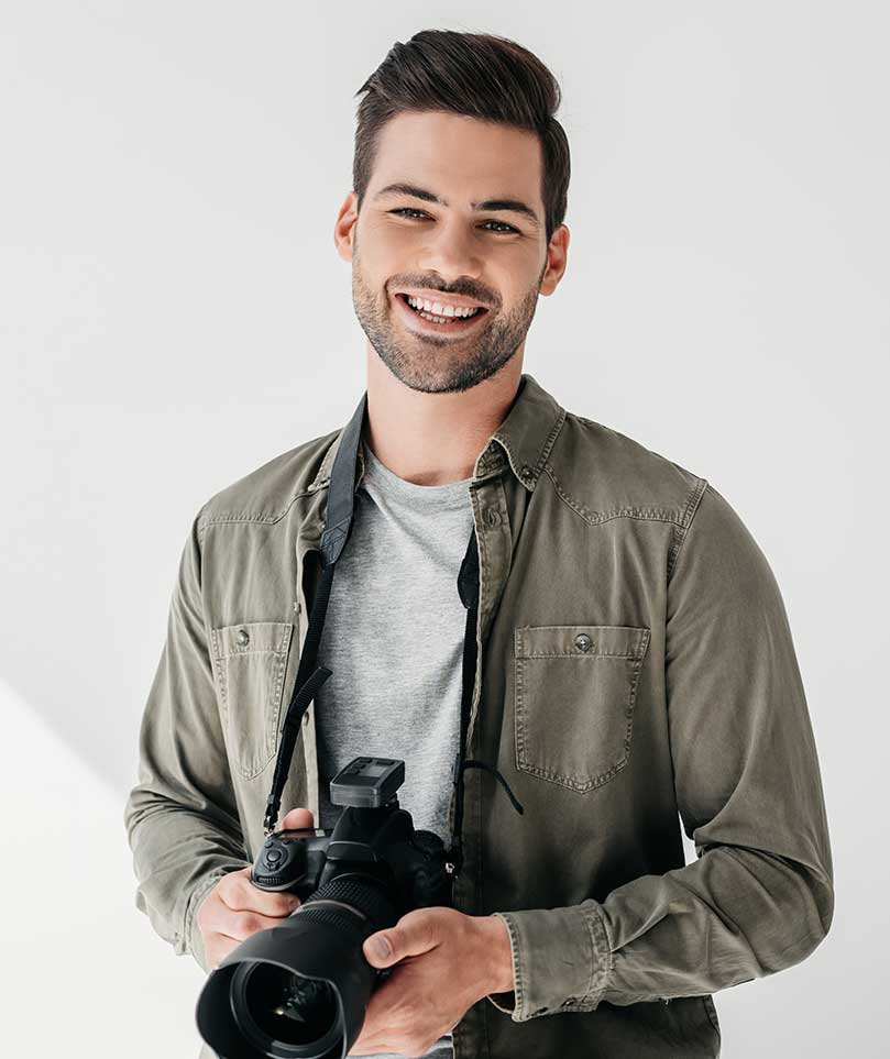Retratos, produtos, eventos e editoriais com direção de arte e tratamento profissional.
